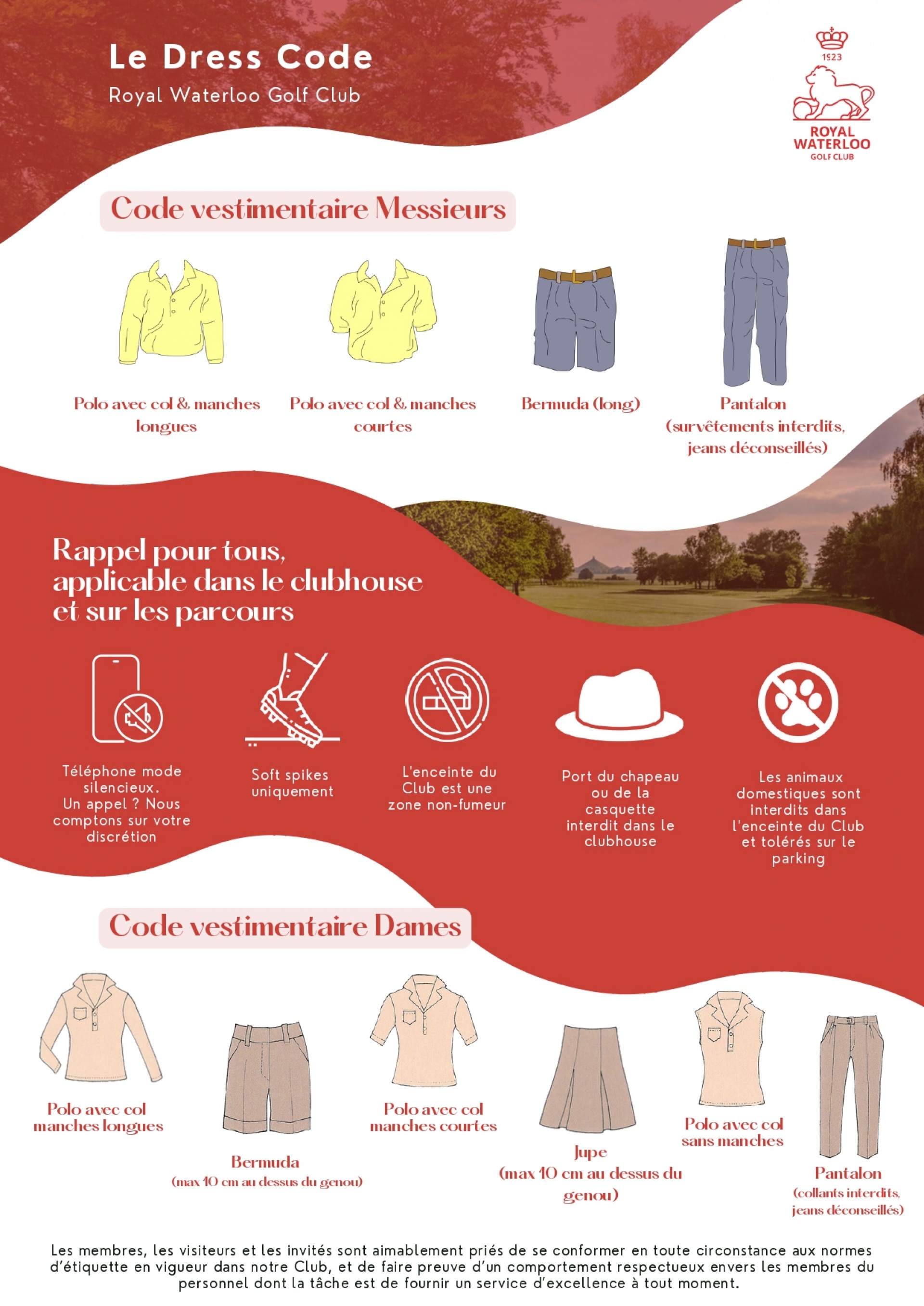 - Une tenue vestimentaire correcte est exigée tant sur les terrains que dans l’enceinte du Clubhouse.